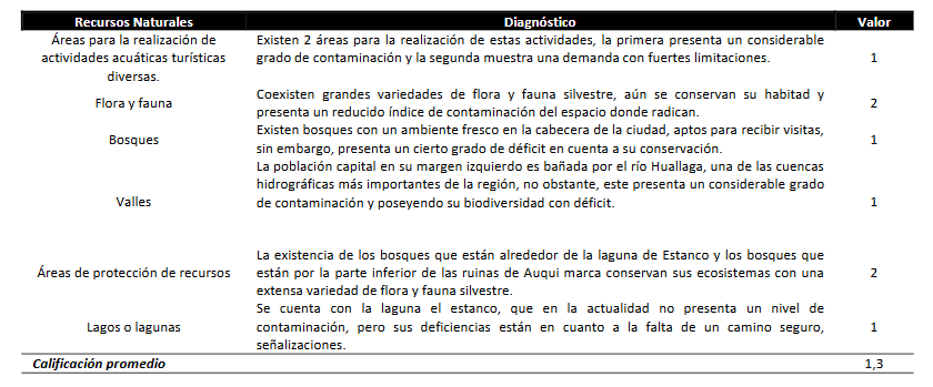 Tabla 2. Evaluación de los recursos turísticos