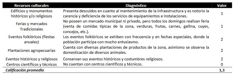 Tabla 3. Evaluación de los recursos culturales