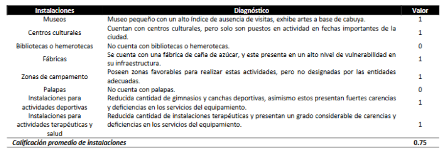 Tabla 5. Evaluación de instalaciones