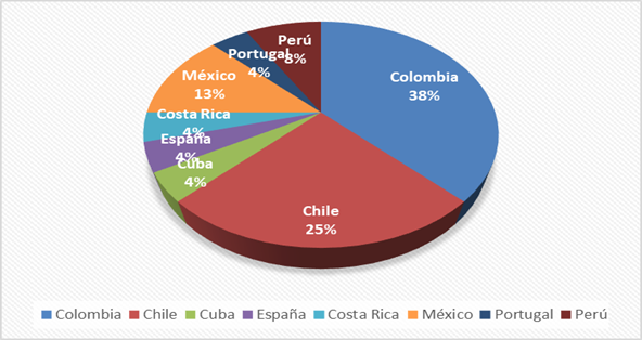La distribución geográfica refleja una predominancia de investigaciones provenientes de América Latina, con una concentración significativa en algunos países. Tal como se expone en la Figura 2, Colombia representa el mayor número de contribuciones, con 9 de los 24 artículos seleccionados (Acevedo et al., 2015; Barragán Moreno & González Támara, 2017; Castellanos-Páez & Vergara-Estupiñán, 2021; Castrillón-Gómez et al., 2020; Castro-Montoya et al., 2021; Chalela-Naffah et al., 2020; Osorio & Santacoloma, 2023; Restrepo et al., 2016; Valdés-Henao, 2018). Le sigue Chile con 6 publicaciones relevantes (Carvajal et al., 2018; González Sanzana & Arce Secul, 2021; Henríquez Cabezas & Vargas Escobar, 2022; Schmidt et al., 2023; Rodríguez et al., 2018; Jordana Schmidt et al., 2023). México figura con tres artículos que abordan la temática objeto de estudio (Barradas Arenas & Cocón Juárez, 2022; Díaz-Barriga et al., 2022; Marrón Ramos et al., 2022), mientras que Perú cuenta con dos investigaciones (Villarreal-Torres et al., 2024; Zárate-Valderrama et al., 2021). Finalmente, países como Cuba (Alvarez et al., 2020), España (Feixas Condom et al., 2015), Costa Rica (Castillo-Sánchez et al., 2020) y Portugal (Casanova et al., 2023) se encuentran representados con una publicación cada uno. Esta procedencia diversa evidencia la existencia de un interés académico sostenido en el fenómeno de la deserción universitaria desde distintos contextos socioeducativos e institucionales, aportando así una perspectiva comparada y enriquecedora para el análisis de los factores críticos que intervienen en la interrupción de las trayectorias académicas en la educación superior.