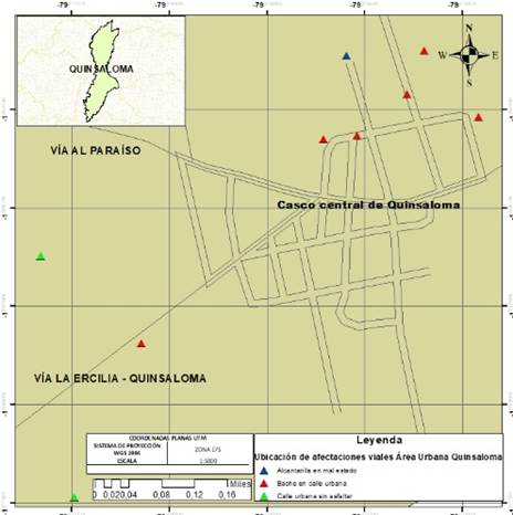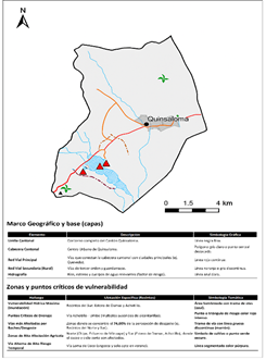 Figura 1. Localización y zonas críticas de vulnerabilidad vial en el cantón Quinsaloma