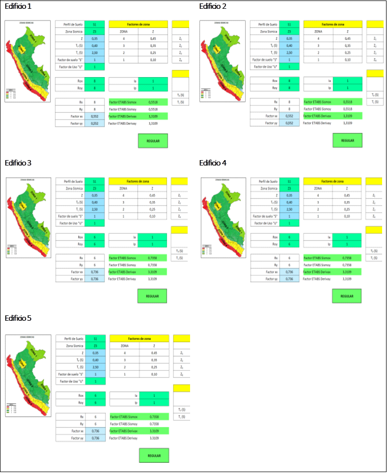 Figura 2. Parámetros sísmicos del análisis modal espectral por edificación