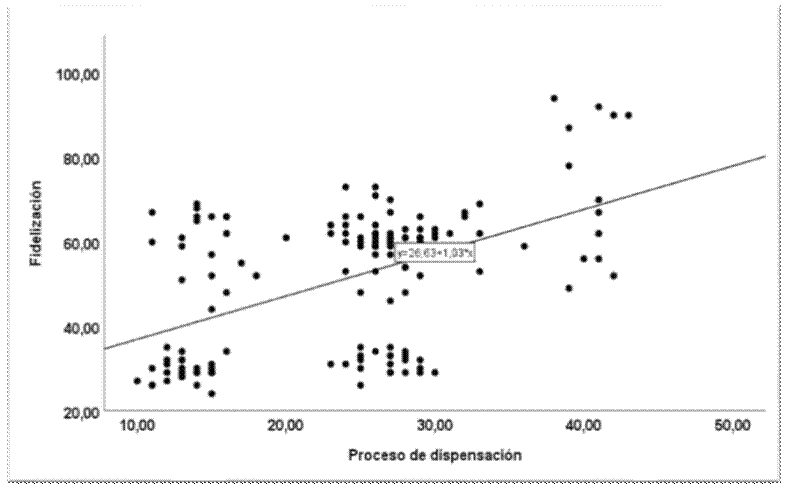 Figura 2. Diagrama de dispersión entre calidad de servicio de dispensación y fidelización