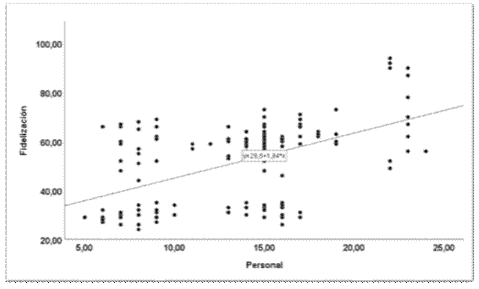 Figura 5. Diagrama de dispersión entre personal y fidelización